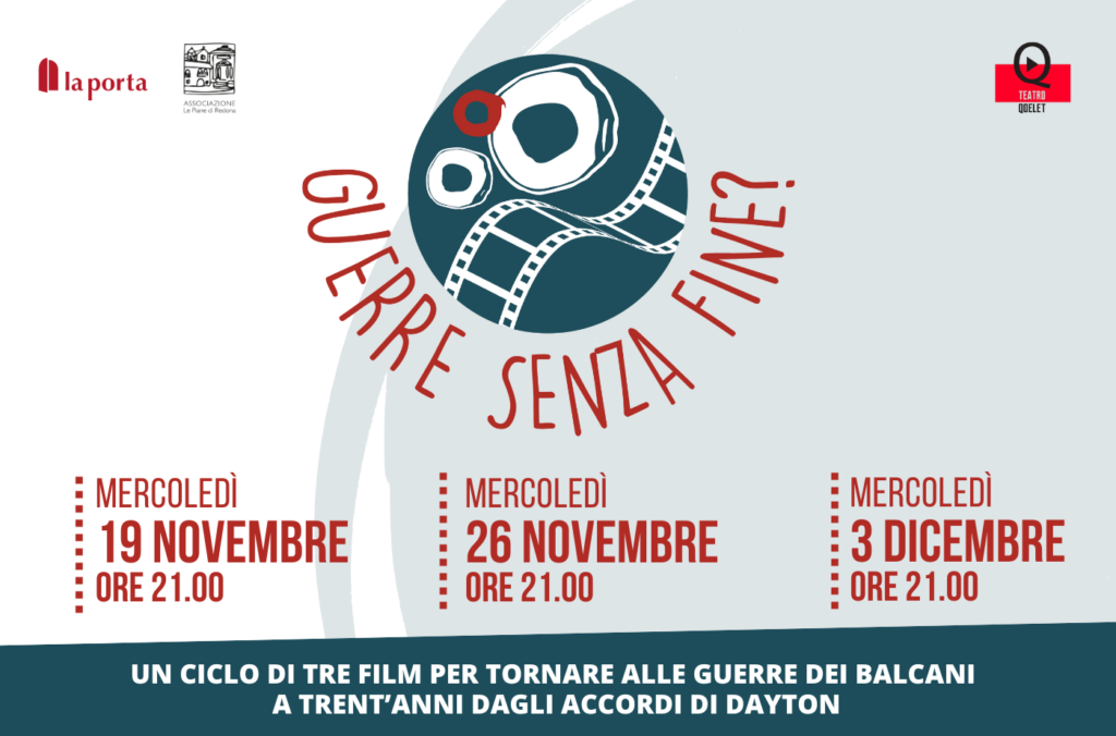 Torniamo a Sarajevo per riflettere sulle guerre di oggi e lo facciamo con il cinema, uno strumento inconsueto per noi della Porta ma che, in questa occasione, può risultare convincente. Ringraziamo perciò l’associazione Le Piane e la sala Qoelet per la collaborazione e la copromozione dell’iniziativa.