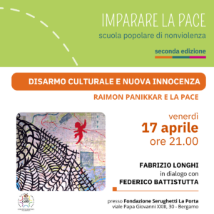 La Scuola popolare di nonviolenza Imparare la pace, alla sua seconda annualità, è uno spazio aperto di ricerca, dialogo e formazione, promosso insieme da una ventina di realtà del territorio bergamasco.