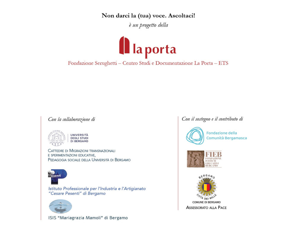 Con la collaborazione dell’Università di Bergamo e degli Istituti Superiori Pesenti e Mamoli, dove la presenza di studenti e studentesse di origine straniera è molto significativa, ci siamo posti l’obiettivo di rendere visibile la “normalità” della presenza dei ragazzi e delle ragazze di origine straniera in città, costruendo spazi in cui essi/e stessi/e possano prendere la parola e raccontarsi.